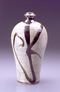 島岡達三は大正8(1919)年、東京の組紐師の家に生まれ、東京工業大学窯業学科を卒業、出征して復員後に濱田庄司に入門しました。昭和25(1950)年、栃木県窯業指導所に職を得、この時に行った学校教材用の古代土器の複製製作が一つのきっかけとなり島岡作品の代名詞とも言うべき〈縄文象嵌〉が生み出されました。本展では、初心な表情が魅力的な貴重な最初期の作品を展示します。