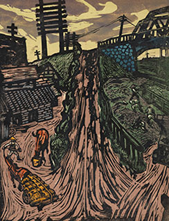 | 小口一郎 《「鉱毒に追われて」より 38.鋼鉄の爪跡》 1971-73年 紙、木版 小口一郎研究会蔵 |